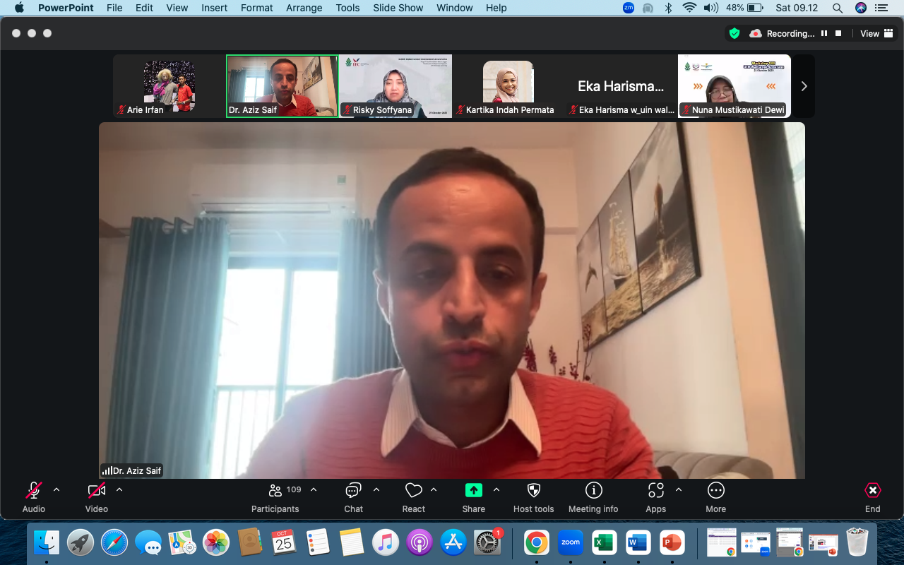 Acara yang dilaksanakan secara daring melalui platform Zoom Meeting ini dipandu oleh Risky Sofyana sebagai moderator, dan diikuti oleh dosen serta mahasiswa Program Studi Pendidikan Bahasa Inggris dari berbagai angkatan, yakni semester 1, 3, dan 5.